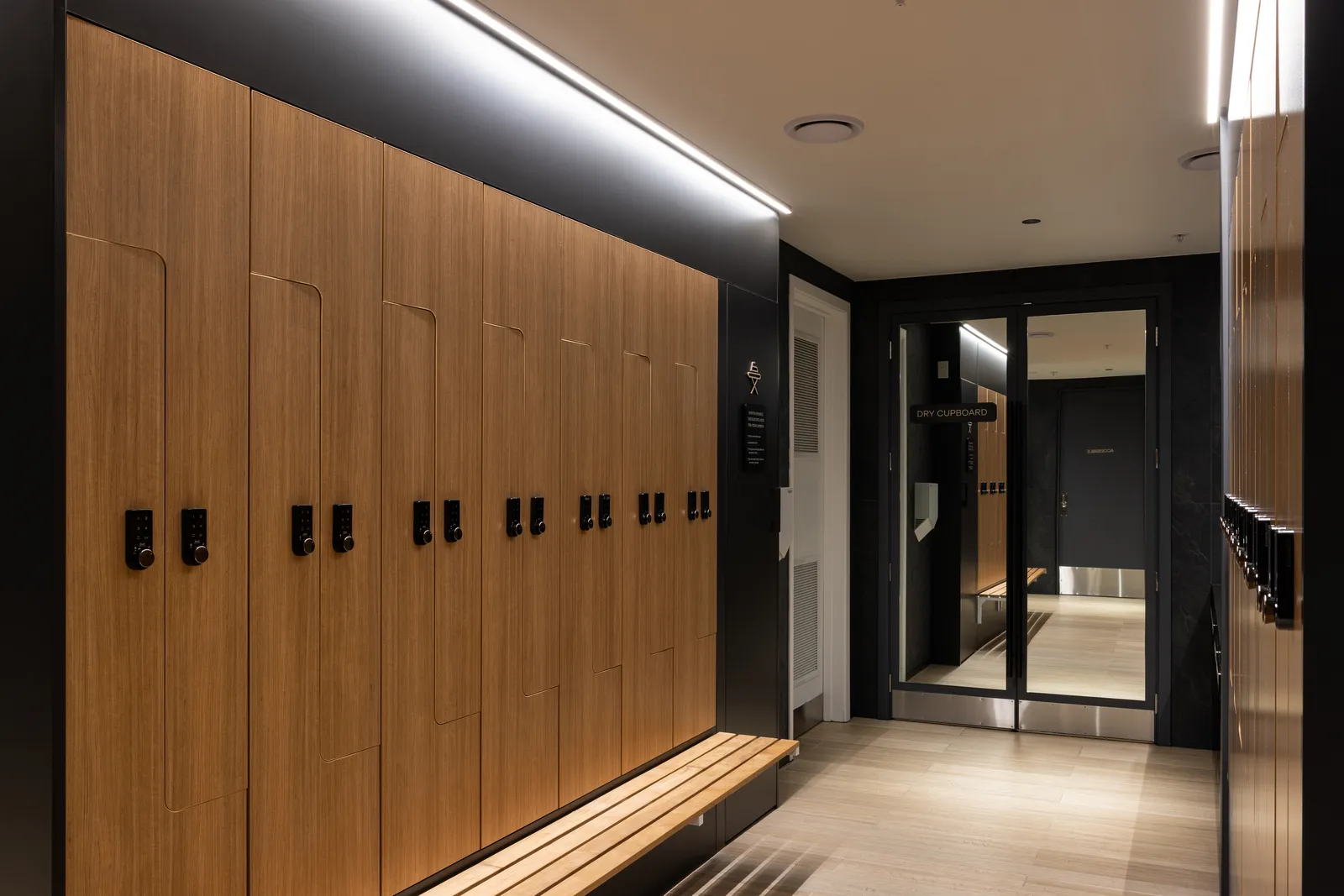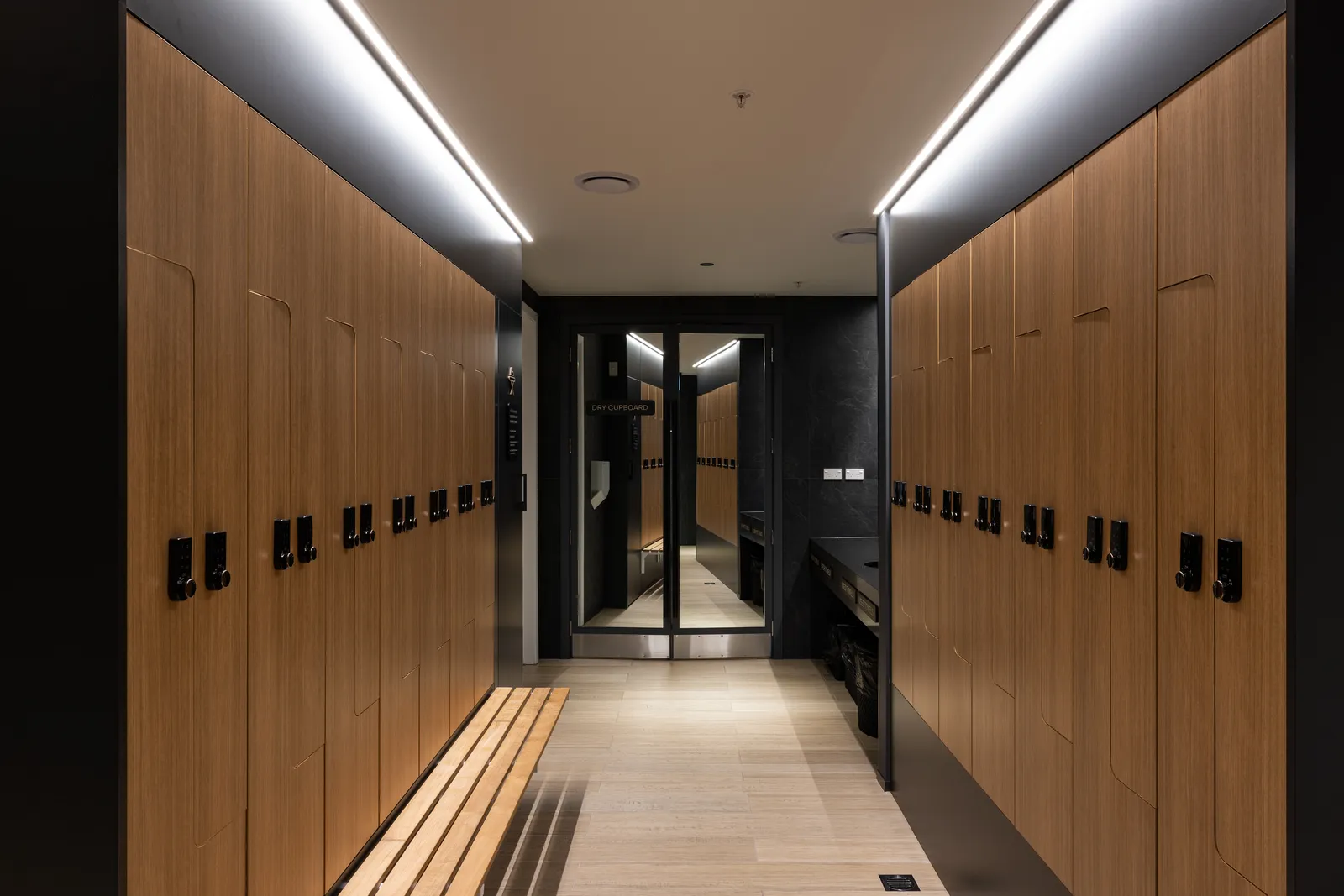 The layout was planned to support intuitive and efficient movement through the space. A clear sequence from entry through to lockers, bathrooms, and supporting amenities ensures ease of use, particularly during peak periods. Generous circulation and well positioned facilities minimise congestion and allow multiple users to comfortably access the space at once.