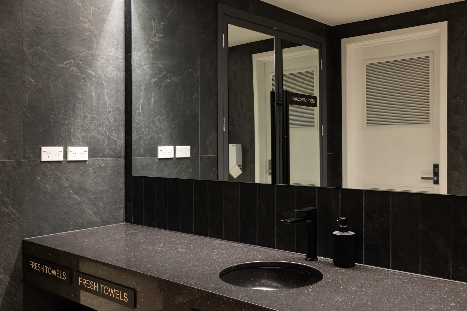 Sustainability was also considered in how the facilities were delivered and will perform over time. Material selection focused on durability and longevity, ensuring the space continues to function under high daily use. Waste diversion was actively tracked throughout construction, achieving a 44% diversion rate, a strong outcome within the constraints of a bathroom-focused fitout where reuse opportunities are often limited.