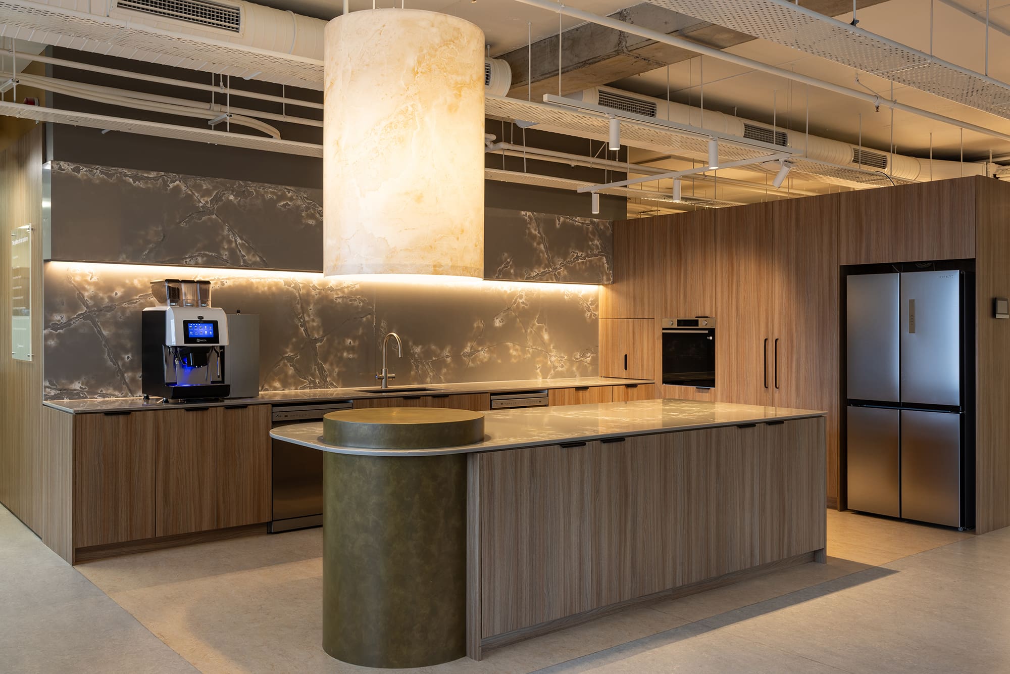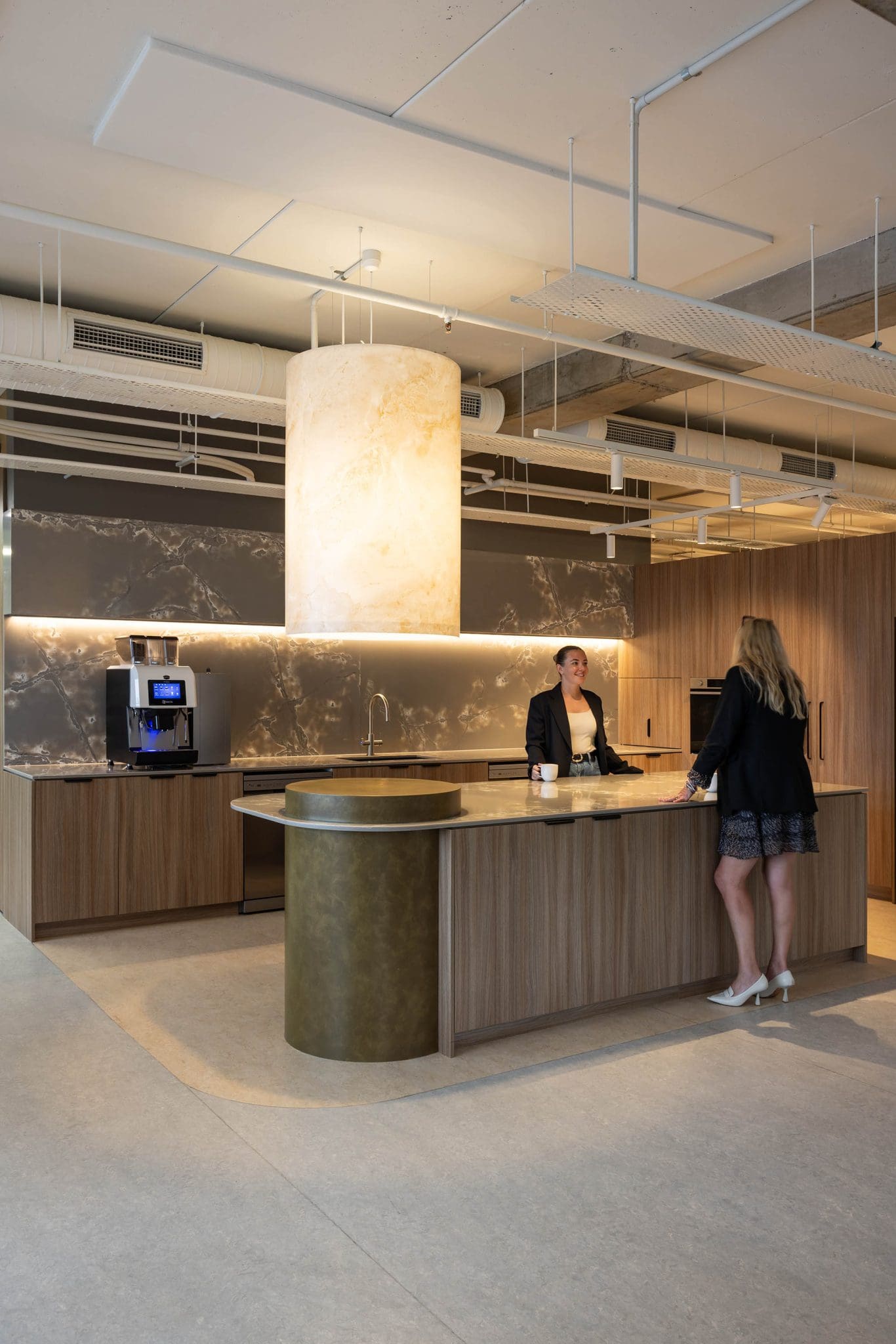 The refurbishment reimagined the existing tenancy to align with how the business operates today while strengthening the expression of the brand within the space. The result is a workplace that balances focus, collaboration, and social connection while presenting a confident and contemporary face to clients and visitors.