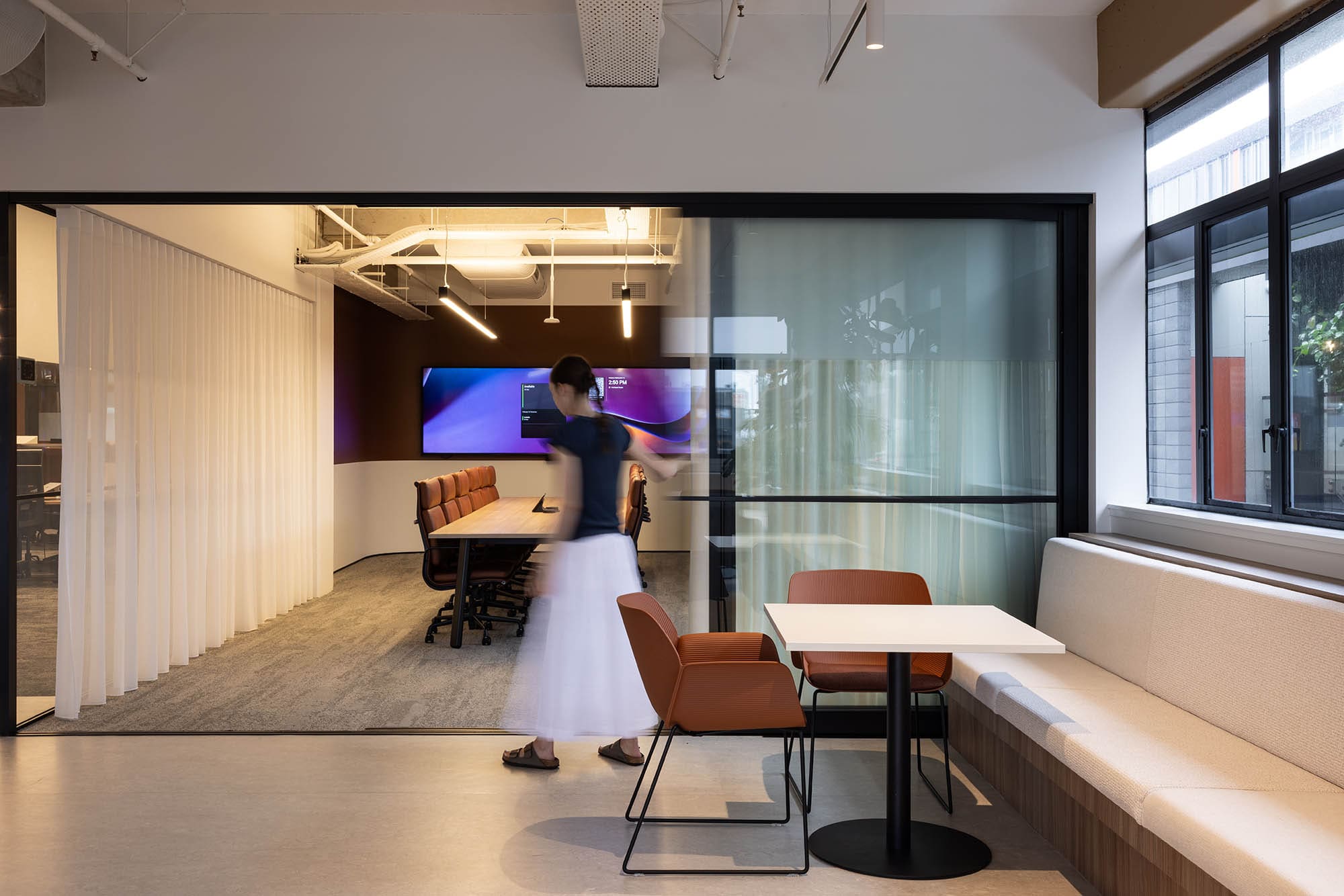 Positioned at the front of the tenancy, this arrival and presentation space establishes a strong first impression while providing flexibility for daily use, team gatherings, and client events.